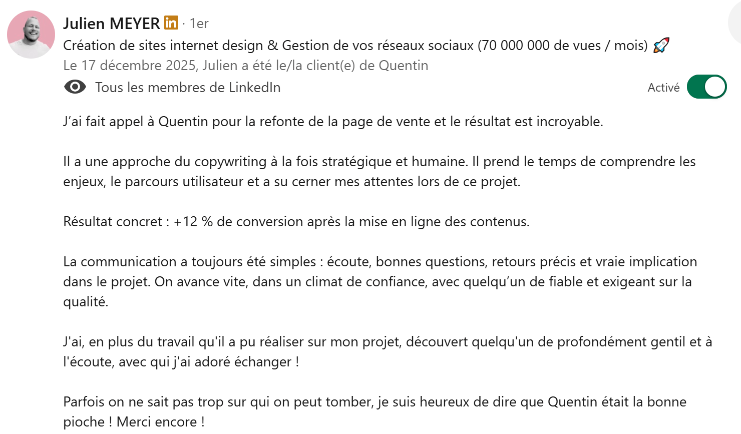 En devenant copywriter, j’ai observé la même situation chez beaucoup d’indépendants et petites structures : un travail de qualité, mais une communication qui ne reflète pas la valeur réelle. Trop floue, trop technique ou trop dispersée.